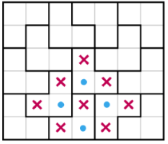 На рисунке представлено разбиение прямоугольника $6\times7$ на уголки. Отразим фигуру из четырёх отмеченных уголков относительно её вертикальной оси симметрии. Фигура перейдёт в себя, следы — в следы, а разбиение поменяется.