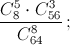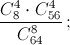 На лотерейном билете требуется отметить 8 клеточек из 64. Какова вероятность того, что после розыгрыша, в котором также будет выбрано 8 каких-то клеток из 64 (все такие возможности равновероятны), окажется, что угаданы