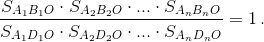 Но последнее равенство очевидно. Действительно, площади треугольников AiBiO и AiDiO для каждого i = 1, 2, ..., n равны, поскольку они имеют общую сторону AiO и равные высоты (рис. слева); высоты, опущенные из вершин Bi и Di на сторону AiO, равны, потому что диагональ AiCi делит параллелограмм AiBiCiDi на два равных треугольника.
