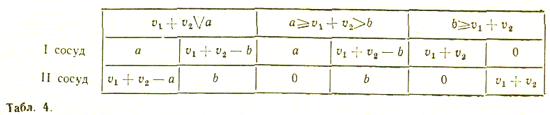 Нам достаточно доказать, что можно получить dm литров. Действительно, поскольку dm = ma – lmb – наименьшее неотрицательное число вида ma + lb, где l – целое, то, добавляя к dm еще l + lm порций по b литров, мы сможем получить нужное количество с ma + lb литров. Как получить dm литров, ясно из таблиц 2 (для m > 0) и 3 (для m < 0).