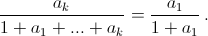 Пусть b1, b2, ..., bn – другой набор положительных чисел, сумма которых равна 1. Ясно, что bk > ak для некоторого k. Пусть k – наименьший индекс с таким свойством, то есть b1 ≤ a1, b2 ≤ a2, ..., bk–1 ≤ ak–1, bk > ak, тогда