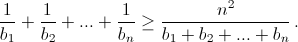 Первый способ. Согласно неравенству между средним арифметическим и средним гармоническим (см. задачу 161402 в)
