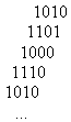Выпишем в каждой строке, начиная с третьей, первые четыре числа, заменив каждое чётное число на 0, а нечётное – на 1: