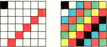 клетка встречалась не более одного раза, — следовательно, красная клетка не встречалась только в одном из столбцов прямоугольника. Следовательно, лишь в одной клетке первой строки квадрата может появиться этот цвет.