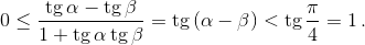 а) Данные числа можно представить в виде tg α, tg β  и tg γ, где 0 < α, β, γ < π/2. Среди чисел α, β и γ можно выбрать два числа, разность которых неотрицательна и меньше π/4. Пусть для определённости 0 ≤ α − β < π/4. Тогда