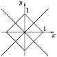y² – |y| = x²– |x| ⇔ y² – x² = |y| – |x| ⇔ (|y| – |x|)(|y| + |x|) = |y| – |x| ⇔ (| y| – |x|)(|y| + |x| – 1) = 0 ⇔ |y| + |x| = 1 или |y| = |x|.