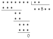 Делитель при умножении на 8 даёт двузначное число, а при умножении на первую и пятую цифры частного – трёхзначное, значит, первая и последняя цифры частного – 9, а всё частное – 90809. Только 12 при умножении на 8 даёт двузначное число, а при умножении на 9 – уже трёхзначное.