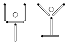И "бокал" (см. левый рисунок), и "рюмка" (см. правый рисунок) составлены из четырех спичек. Внутри каждого "сосуда" — вишенка. Как нужно переместить "бокал" и "рюмку", переложив по две спички в каждом из них, чтобы вишенки оказались снаружи?