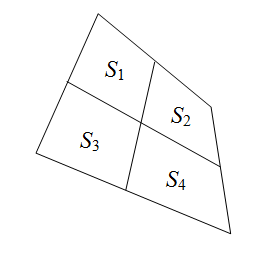 Теперь из задачи 155130 следует, что площади четырёхугольников одного ряда (заключенных между соседними прямыми первой серии) образуют арифметическую прогрессию (при k > 2). Причём разности этих прогрессий одинаковы. Действительно, для четырёх четырёхугольников с общей вершиной (см. рис.) согласно задаче 211654 S2 – S1 = S4 – S3.