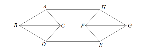 Существует ли многогранник (не обязательно выпуклый), полных список рёбер которого имеет вид: AB, AC, BC, BD, CD, DE, EF, EG, FG, FH, GH, AH (на рисунке приведена схема соединения рёбер)?