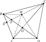 Пусть диагонали AC и BD пересекаются в точке O. Без ограничения общности можно считать, что M лежит в треугольнике BOC. Пусть прямая CM пересекает сторону AB в точке Q.