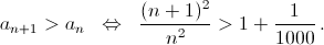 Следовательно, наше неравенство выполняется тогда и только тогда, когда n ≤ 2000. Это значит, что последовательность до 2001-го члена возрастает, а затем убывает.