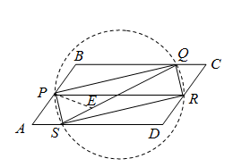 ∠BPR = 2∠QPR = 2∠PRS = ∠PRD, то есть AB || CD. б) Пусть угол A – острый и AB ≤ BC. В качестве точек P и R возьмём середины сторон AB и CD. На отрезке PR как на диаметре построим окружность, Q – точка её пересечения со стороной BC (если таких точек две, возьмём ближайшую к точке C), а S – диаметрально противоположная точка. Мы получили прямоугольник PQRS, вписанный в параллелограмм ABCD (см. рисунок). Докажем, что он – подходящий.