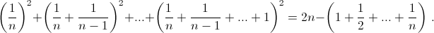 Дробь 1/k встречается в последних k скобках левой части, поэтому восле раскрытия скобок 1/k² встретится k раз (что даст в сумме 1/k), а дробь 2/kl для каждого