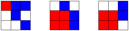 Дано 27 кубиков одинакового размера: 9 красных, 9 синих и 9 белых. Можно ли сложить из них куб таким образом, чтобы каждый столбик из трёх кубиков содержал кубики ровно двух цветов? (Рассматриваются столбики, параллельные всем ребрам куба, всего 27 столбиков.)