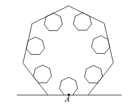 Рассмотрим правильный семиугольник. Проведём гомотетию с большим коэффициентом относительно середины A его стороны. Вырежем из большого семиугольника еще шесть маленьких, получающихся из первого поворотами на 360°/7 вокруг центра большого семиугольника. Оставшаяся "снежинка" имеет центр симметрии 7-го порядка (см. рис.)..