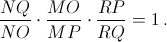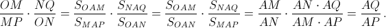 Применив теорему Менелая (см. задачу 153857) к треугольнику OPQ и прямой MN, получим