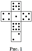 Итак, нам надо найти последовательность из шести чисел с минимальной суммой, в которой нет трёх подряд идущих чисел. Эта последовательность 1, 2, 4, 5, 7, 8, а общее число точек равно 1 + 2 + 4 + 5 + 7 + 8 = 27. Пример их расположения на гранях куба изображён на рисунке.