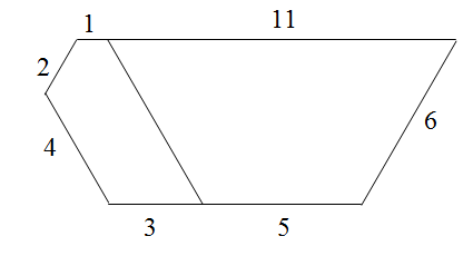 Решение 1:На рис. слева изображен пятиугольник с углами 60° и 120° и сторонами 2, 4, 8, 6, 12. У отсекаемого подобного пятиугольника все размеры в два раза меньше.