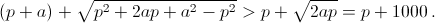 Рассмотрим уравнения x² – 2px + p² = 0 и x² – 2(p + a)x + p² = 0, где p = 109, a = 5·10–4. Первое уравнение имеет единственный корень p, больший корень второго уравнения равен