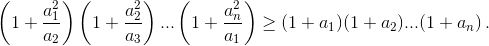 Перемножив неравенства (*) для i = 1, 2, ..., n (полагаем an+1 = a1), получим: