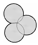 Пусть P – точка, через которую проходят границы всех кругов. Соединим P с двумя соседними “вершинами” криволинейного многоугольника. Его “сторона” представляет собой дугу единичной окружности, поэтому её длина равна (выраженной в радианах) величине центрального угла, опирающегося на эту дугу, то есть в 2 раза больше величины вписанного угла APB. Таким образом, периметр многоугольника в 2 раза больше суммы углов, под которыми его стороны видны из точки P. Эти углы вместе составляют полный угол, величина которого равна 2π.