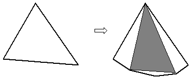 Теперь приведём примеры, показывающие, что требуемые значения разности достигаются. При N = 3, 4, 5 эти значения равны 1, 0 и 1; примеры очевидны, и в каждом есть белый треугольник, примыкающий к стороне N-угольника. Осталось заметить, что при увеличении числа сторон на три можно увеличить значение разности на 1, заменив один из таких примыкающих белых треугольников на шестиугольник, разрезанный, как показано на рис.: