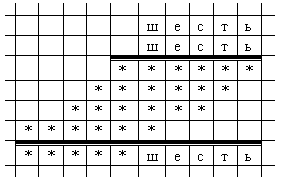 Пусть ШЕСТЬ = х, тогда ШЕСТЬ² − ШЕСТЬ = х(х − 1). Но разность ШЕСТЬ² − ШЕСТЬ оканчивается пятью нулями. Так как х и х − 1 – соседние числа, то одно из них делится на 32, а другое нечётно и делится на 3125 (100000 = 32·3125). Заметим, что вторая цифра числа (Е) равна нулю (смотрите схему умножения). Пятизначные числа, кратные 3125 и удовлетворяющие условию Е = 0, – это 40625 и 90625. Соседние с ними числа – это 40624 и 40626, 90624 и 90626. На 32 делится только 90624. Значит искомое число – 90624 или 90625. Первое не подходит, так как 4² не оканчивается на 4.