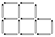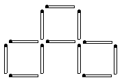 а) В конструкции на рисунке переложите две спички так, чтобы получилось пять равных квадратов. б) Из новой фигуры уберите 3 спички так, чтобы осталось только 3 квадрата.