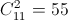10 + 9 + 8 + ... + 1 + 0 = 55.