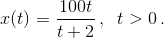 то графиком функции x(t) является часть гиперболы x(t) = – 200/t, смещённой на 2 влево и на 100 вверх (см. рис.).