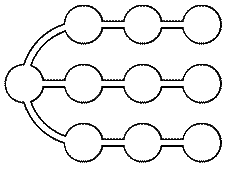 Осталось рассмотреть системы укреплений без циклов. Покажем, что единственная минимальная надёжная среди них – это трилистник. Возьмём любую систему, не содержащую ни цикла, ни трилистника, и укажем, как должна действовать пушка. (Мы опишем стратегию для связной системы. Если же система несвязна, то есть состоит из нескольких участков, не связанных между собой траншеями, то пушка должна последовательно реализовать эту стратегию для каждого участка.)