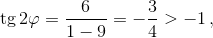 значит, 2φ > 135°). Следовательно, его тангенс равен 2. Тангенс последнего угла находится как тангенс суммы двух первых углов, взятый с противоположным знаком: