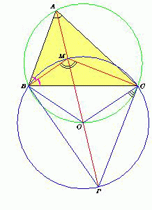 Продолжим отрезок AM за точку M до пересечения c этой окружностью в точке P. Если ∠BAC = 2α, то ∠BMC = 90° + α.