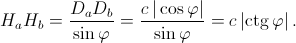 Точки Ha и Hb лежат лежат на перпендикуляре, опущенном из C на прямую AB. Отрезок DaDb – проекция отрезка AB на прямую CM, а так как угол между прямыми AB и CM равен φ или 180° – φ,  то DaDb = AB |cos φ| = c |cos φ|.