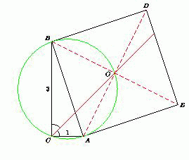 На гипотенузе AB прямоугольного треугольника ABC во внешнюю сторону построен квадрат ABDE. Известно, что AC = 1, BC = 3.