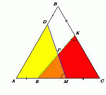 Олимпиадная задача по планиметрии: угол между прямыми DM и KE в треугольнике
