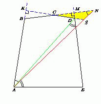 Это значит, что точка D лежит внутри треугольника ABN. Пусть прямые CD и AN пересекаются в точке S. В треугольнике CNS угол CNS – острый (как угол при основании равнобедренного треугольника ABN ), а угол NSC – тупой (как внешний угол прямоугольного треугольника AKS). Значит, CS < CN. Поэтому BC + CD < BC + CS < BC + CN = BN = 1.