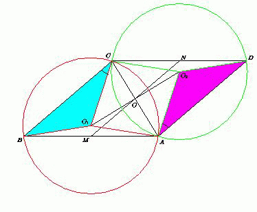 общей хорде AC и проходит через её середину O. По условию MN проходит через середину O1O2. Следовательно, точка O и есть середина O1O2.