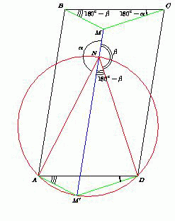∠AM'D = ∠BMC = 180° – (180° – α) – (180° – β) = 180° – ∠AND. Поэтому