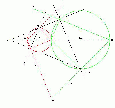 противоположна точке K . В то же время, точка I лежит на описанной окружности