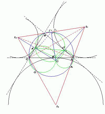 угла при вершине B треугольника ABC. Аналогично точки A и B лежат на отрезках ICIB и IAIB соответственно.