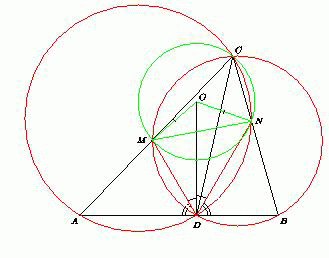 На стороне AB треугольника ABC выбрана точка D . Окружность, описанная около треугольника BCD , пересекает сторону AC в точке M , а окружность, описанная около треугольника ACD , пересекает сторону BC в точке N (точки M и N отличны от точки C ). Пусть O – центр описанной окружности треугольника CMN . Докажите, что прямая OD перпендикулярна стороне AB .