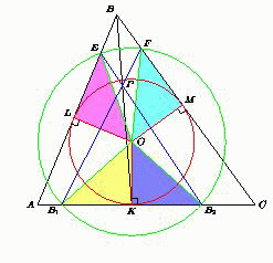 Пусть отрезки B1F и B2E пересекают BK в точках P1 и P2 соответственно. Достаточно доказать, что точки P1 и P2 совпадают.