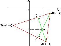 Даны точки A(5; - 1), B(4; - 8), C(- 4; - 4). Найдите координаты точки пересечения высот треугольника ABC.