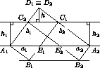 A1E1 = A2E2, то равны их высоты. Поэтому B1B2 || A1A2. Следовательно, Следовательно, A1E2B2B1 – параллелограмм, и треугольники A1B1E1 и E2B2A2 равны по катету и гипотенузе. Из этого следует, что любая горизонтальная прямая, пересекающая эти треугольники, пересекает их по равным отрезкам. Если же горизонтальная прямая пересекает параллелограммы A1E1C1C2 и A2E2C2C1 или совпадающие треугольники C1D2C2 и C1D1C2, то равенство соответствующих отрезков очевидно.
