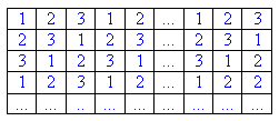 Ясно, что если прямоугольник m×n разрезан на уголки, то mn делится на 3. Пусть n кратно 3. Расставим в клетках прямоугольника числа так, как показано в таблице: