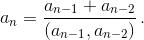 Пусть (ak, ak+1) = 1. Тогда (ak, ak+1) = (ak + ak + 1, ak+1) = (ak+2, ak+1), то есть для всех последующих членов последовательности НОД тоже будет равен 1. При этом, начиная с k-го члена, последовательность превращается в последовательность an = an–1 + an–2, которая неограниченно возрастает, что невозможно.