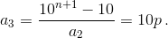 Докажем, что последовательность {an} – периодическая с периодом 2. Период дроби 1/p равен 1/p (10n – 1), где n – наименьшее натуральное число, для которого 10n – 1 кратно p. Таким образом, a2 = 2/p (10n – 1). Поскольку a2 чётно, но не делится ни на 22, ни на 5, период обыкновенной дроби 1/a2 будет равен