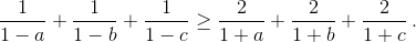 Поскольку сумма числителей равна 0, неравенство будет доказано, если мы заменим знаменатели на равные таким образом, что каждая дробь при этом не увеличится. Если a ≥ b ≥ ⅓ ≥ c, то заменим все знаменатели на 1 – c², в результате отрицательное слагаемое не изменится, а положительные не увеличатся. Если a ≥ ⅓ b ≥ c, то заменим все знаменатели на 1 – b², тогда положительное слагаемое и одно из отрицательных только уменьшатся, а второе отрицательное слагаемое останется неизменным.